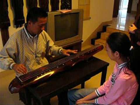 今夏赋闲,无所事事,管着一些音乐聊天群,和一帮乐迷纠缠在一起,共享天籁之音。因为女儿的缘故,常聊起琵琶和一些民乐。群友中,也不乏酷爱古琴之士,十分投缘聊得很起劲。常感慨道:伯牙善琴、子期善听,所谓知音也。 当时女儿的琵琶已考完九级,来年考完十级,就将无所事事了。听着琵琶发出的唧唧喳喳声,暗地里常一个人寻思:小家伙业余喜欢的乐器,琵琶之后,还学些什么呢? 此时,恰巧和诸友讨论着传统文化的话题,常从文化的话题中谈及古琴,又从古琴的话题中谈及更多的文化。喜欢古典文学的采萝,此时也十分钟情古乐,还购了一张用料考究的古筝作为生日礼物犒劳自己。然而,随着古琴话题越说越久,兴趣的转移也渐行渐远,从谈琴到弹琴,学琴的念头渐渐显山露水。 金秋十月的前夜,自己在无聊中筹划国庆长假的休闲。夜深人静,一个人坐在电脑前发呆。把近阶段的大小琐事一串联,突然想起那个失落的梦。马上与家人友人商量,居然都是一拍即合。于是确定在国庆长假里,携家人去一趟扬州,专程拜访慕名已久的广陵派梅大师的弟子、斫琴高手张玉新君,企望觅得两张上好的古琴回家,续我十年的旧日梦。