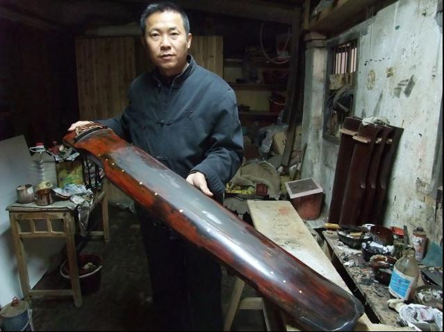 夜深在床上黑着灯瞎聊,海阔天空之际不免稔熟起来。这才知道玉新居然是做大漆的行家,与我一样的不安份守己,放弃了国家漆器质量检测中心的稳定工作不干,自己跑出来开了一家古筝作坊。玉新虽是以制筝为业,然而彼时有不少“扬州出”的古琴作品,其实都有玉新的幕后支持,人家手里的老琴有了毛病,也常常来找玉新帮忙修复。